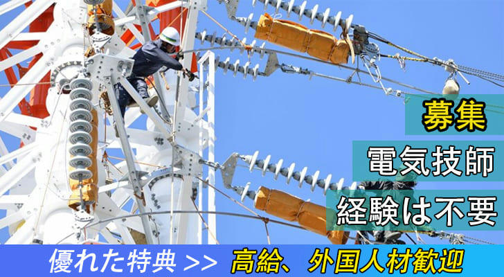 日本での電気技師の求人:経験は問いません、福利厚生は充実、外国人材歓迎